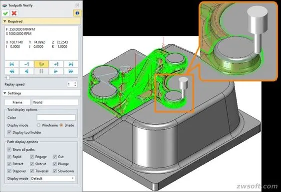 Based on the geometry of the part and the machine's available movement axes, the path for the cutting tool —