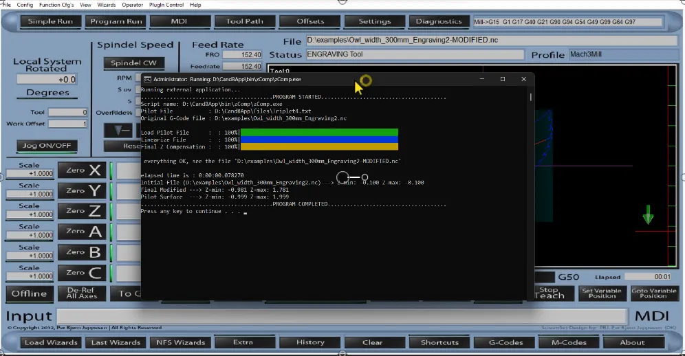 All-in-one solution for backlash and Cartesian correction in misaligned kinematics and uneven surfaces for Mach3 controller
